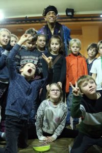 Vzhledem k tomu, že můj syn František dosáhl koncem září kýženého věku, bylo načase takovou akci otestovat společně s ním. Jako ideální příležitost navštívit „velké lala“ se jevil program americké formace The Pyramids, který mapuje historii jazzu od odvlečení otroků z Afriky až po současné výboje žánru. To vše v průběhu cca pětačtyřiceti minut, což se zdá jako nadlidský úkol, ale kapela se s ním vypořádala vcelku obstojně. To znamená, že zcela pochopitelně nemohla podat přesný historický exkurs ani představit veškeré zákruty jazzové hudby, ale jako iniciační obřad to dozajista mělo velký význam a každý z cca 230 dětských účastníků si z něj měl možnost odnést určitou zkušenost nebo čistě impresi dle svého věku i (či) nátury. Právě kvůli snaze o faktografii mělo vystoupení občas až příliš narativní rozměr, což především u mladší (nejen zcela nejmladší) části vyvolávalo ztrátu pozornosti, a pro ty starší bylo vše vlastně bráno poněkud hopem, aby si mohli udělat přesnější obrázek. Retardujícím momentem mohl být i následný překlad do češtiny, ale vzhledem k tomu, že se role nejen tlumočníka, nýbrž i spoluaktivního hudebníka ujal Martin Alacam (jinak asi nejznámější coby člen kapely Metamorphosis), mělo všechno samovolný spád, a dokonce určitou nadhodnotu. Suma sumárum mix klasického „výchovného koncertu“ a zcela spontánních momentů. Byla vštěpena jména jako John Coltrane či Charlie Parker a v neposlední řadě Ella Fitzgerald (kterou skvostně interpretovala druhdy i houslistka Sandra Poindexter). Hlavní showman, saxofonista, zpěvák i stepař a tanečník Idris Ackamoor sice nesl břímě vypravěče, ale zároveň vnášel do všeho patřičnou nonšalanci. Místo nějakého downtownového úletu patřil závěr latino jazzu, ale to vše bylo ok.